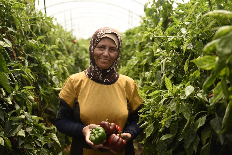 כרימה יחיא מכפר קרע בחממת פלפלים. צילום: נועה קוזק